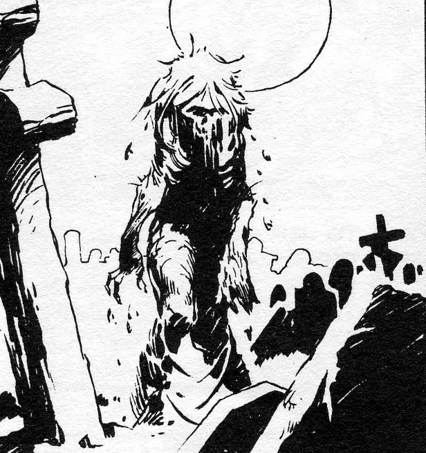 Artist Albert Cuellar very conservatively referenced the central image from this very early panel by the master of macabre himself, Berni Wrightson! This drawing originally appeared in an EC horror spoof called Ghastly Horror Comix in 1969 but it was reprinted and made more widely available in the 1980 Wrightson collection The Mutants. You can hardly blame Cuellar for ripping this off. It's a perfectly archetypal zombie and, in the spirit of fair play, Wrightson himself was aping the great comic artist Graham "Ghastly" Ingels when he drew this for an underground fanzine in the late 60's.
